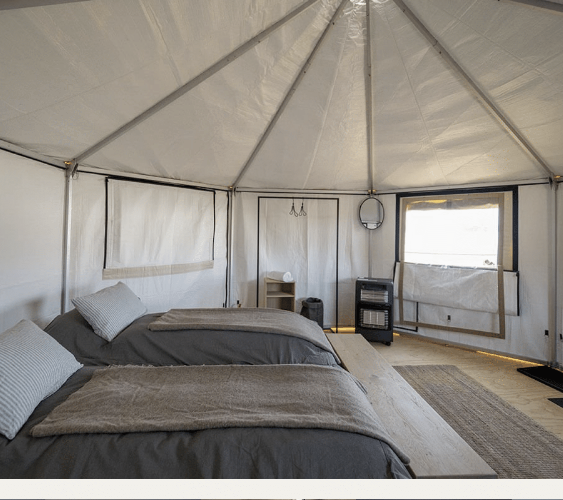 Our tents are equipped with quality beds, modern interiors, and a private patio overlooking the Eqi Glacier. The tents are not equipped with water or electricity. Shared shower and toilet facilities are located just next to the tents.