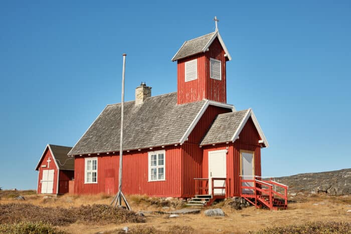 Greenland’s most famous hotel is the Hotel Arctic in Ilulissat. It is located with an incredible view over the town of Ilulissat, the Ice Fjord, and Disko Bay. Hotel Arctic is the world’s northernmost 4-star hotel and features a 5-star conference center. The hotel is located just outside the town, approximately a 15-minute walk from the town center (app. 1.5 km from the central intersection in town). The hotel has two great restaurants and a large terrace outside, which is the perfect place to enjoy a glass of wine while the sun shines its golden glow at midnight over the icebergs at Ilulissat Ice Fjord.