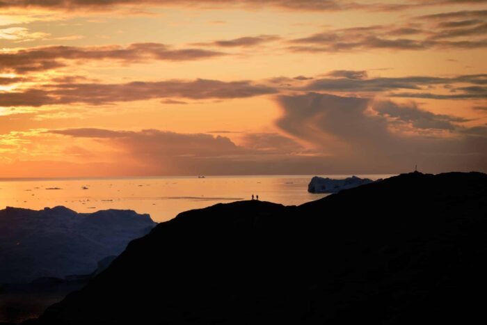 The icebergs are stunning in all types of weather. In the sunshine, the contrasts are vivid; the blue shades are mesmerizing on cloudy days, and the midnight sun casts a unique glow on the ice sculptures at night. A boat trip on a bright night is an extraordinary experience. Remember to bring warm clothes, or you can rent a sealskin suit.