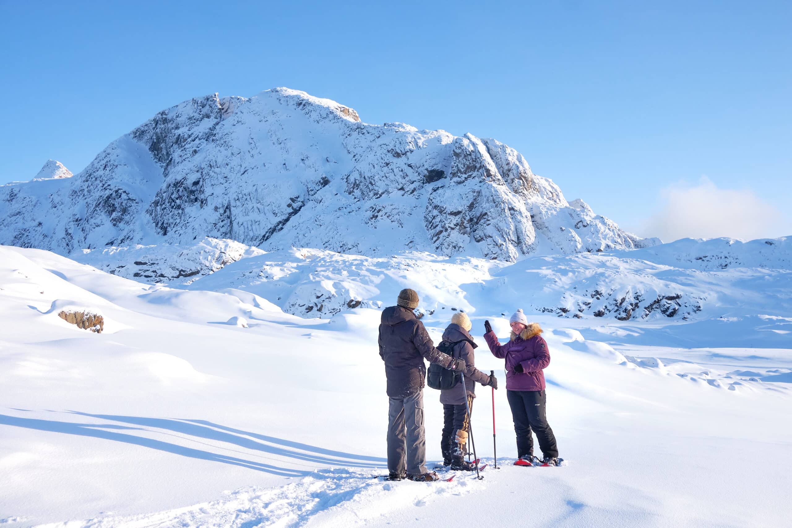 We head towards the town’s waterworks at the end of the Arctic Circle Trail, then move along the mountainside to Lake Nilliasup, one of the town’s drinking water sources. Crossing the frozen lake, we trek across a moraine shaped by ancient glaciers. We may spot polar foxes and snow hares, and see traces of glacial movements on the mountains.