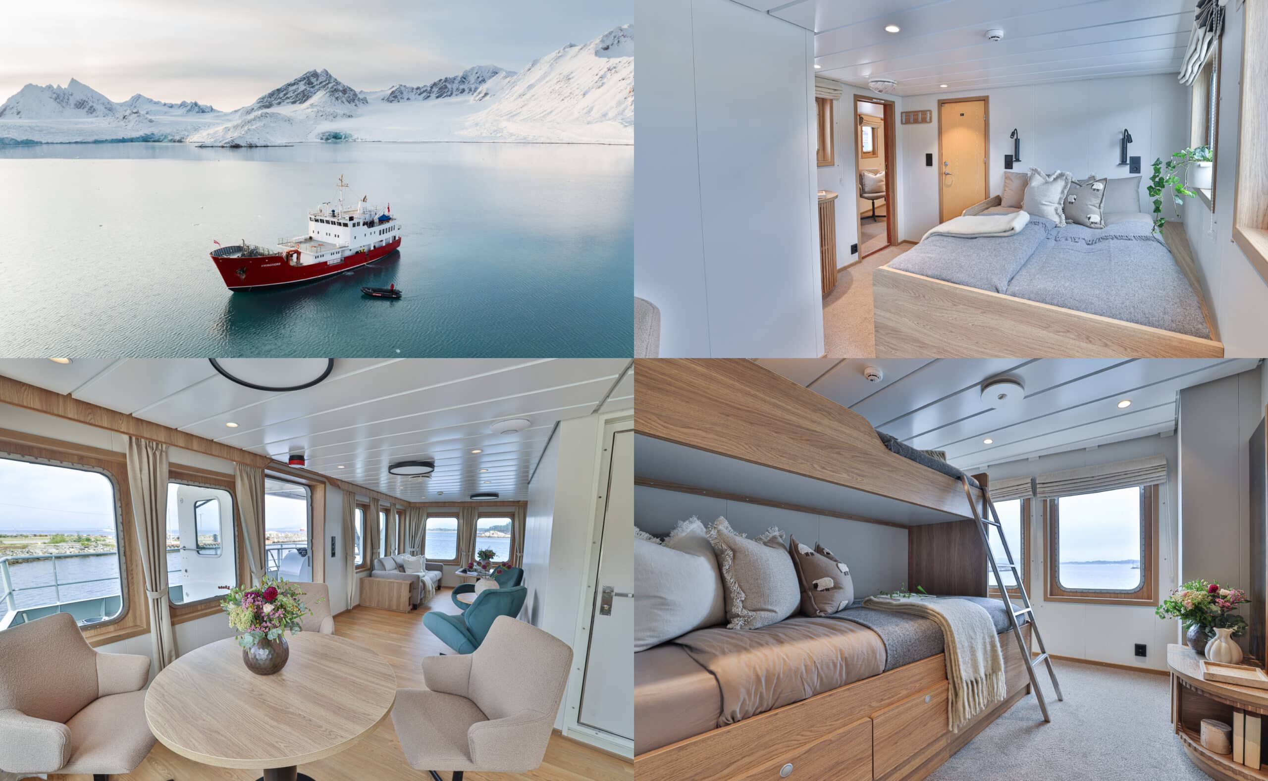Introducing our latest expedition vessel, uniquely designed for rugged environments and accommodates up to 12 guests. In 2023, the ship was fitted with a new energy-efficient engine and NOX cleaning system, which significantly reduced NOX emissions by up to 95%, making it one of the most environmentally friendly small ships.