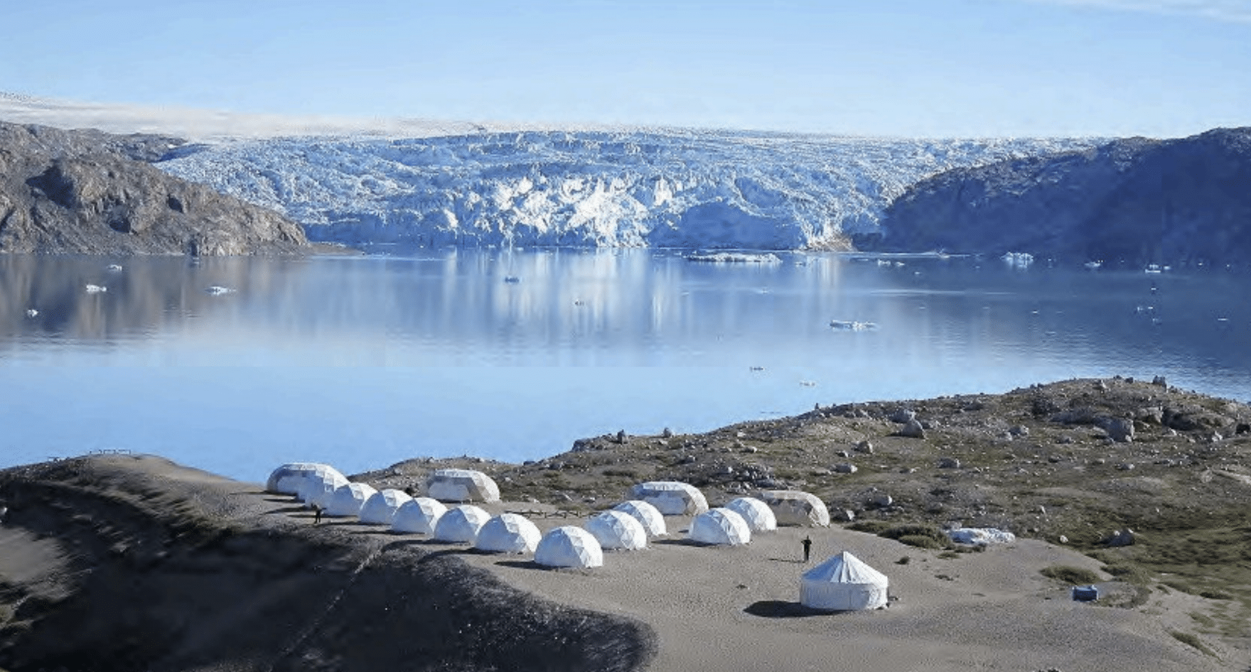 Turen vil starte fra Narsarsuaq, hvorfra du vil sejle over fjorden til basen. De første par nætter vil blive tilbragt i “Domo Loft”-telte på langs sandområder ved kysten af en fjord med udsigt til tre gletsjere, der når ned til vandet. Fra lejren vil der være vandreture i bjergene og vandreture på gletsjeren. Du vil opleve betagende udsigter over Indlandsisen – et endeløst hvidt landskab.