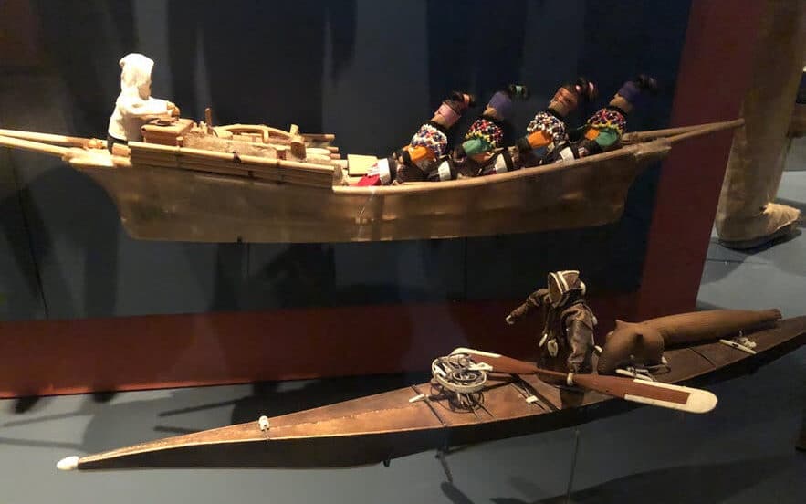 Above you see what my ancestors used for transportation during summer. The men would go on a qajaq (kayak), while the women and the children went with the big Umiak.